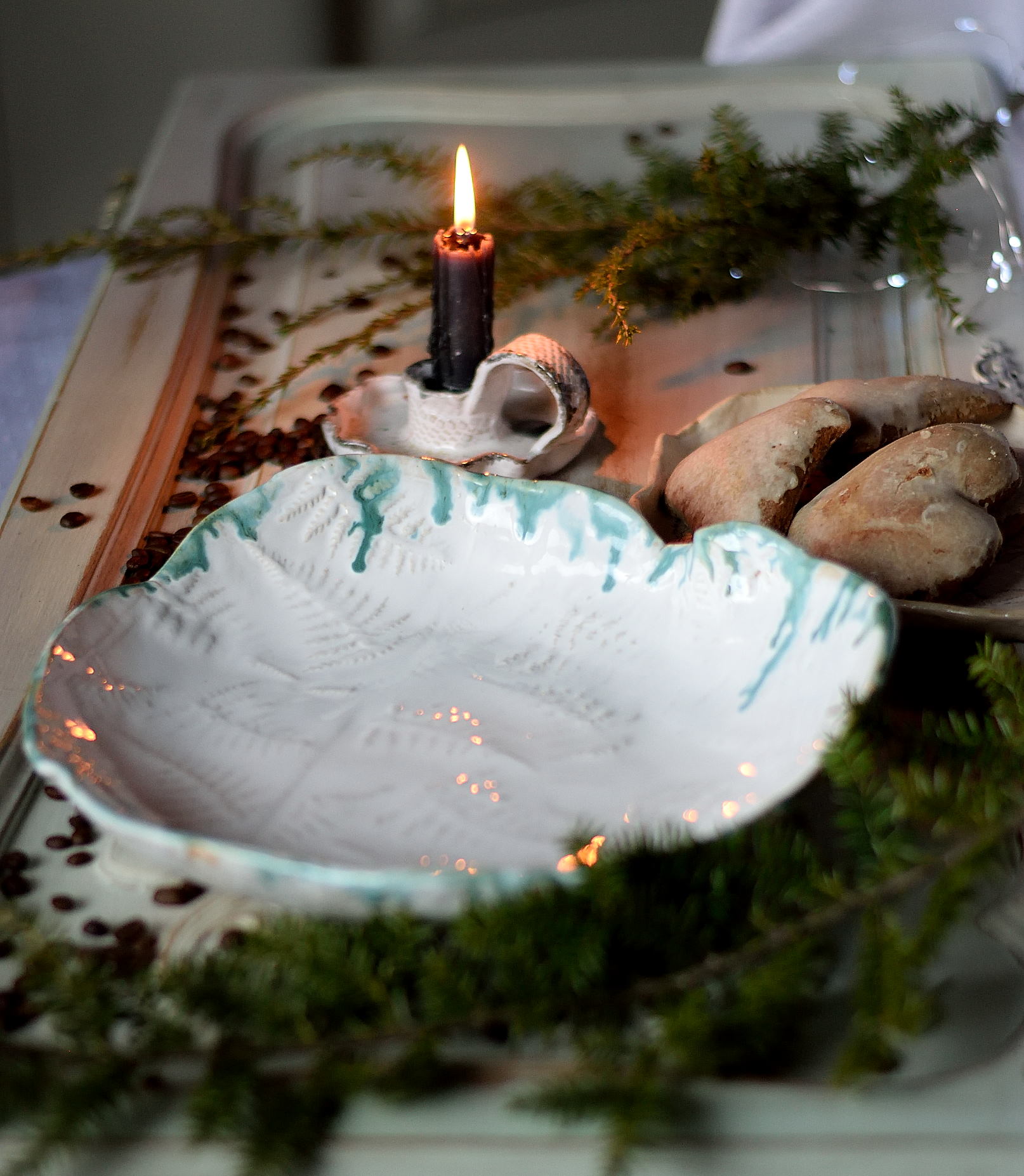 Unikalna, ręcznie wykonana misa ceramiczna., z motywem gałązek paproci. Szkliwiona białym szkliwem, ozdobiona delikatnymi gałązkami paproci doskonale wpisuje się w każdą aranżację wnętrza. Jej falowane boki dodają artystycznego charakteru, a duża pojemność sprawia, że jest zarówno dekoracyjna, jak i funkcjonalna. Wszystkie szkliwa użyte do wykonania misy są dopuszczone do kontaktu z żywnością, co czyni ją idealnym wyborem na owoce, sałatki czy inne potrawy.