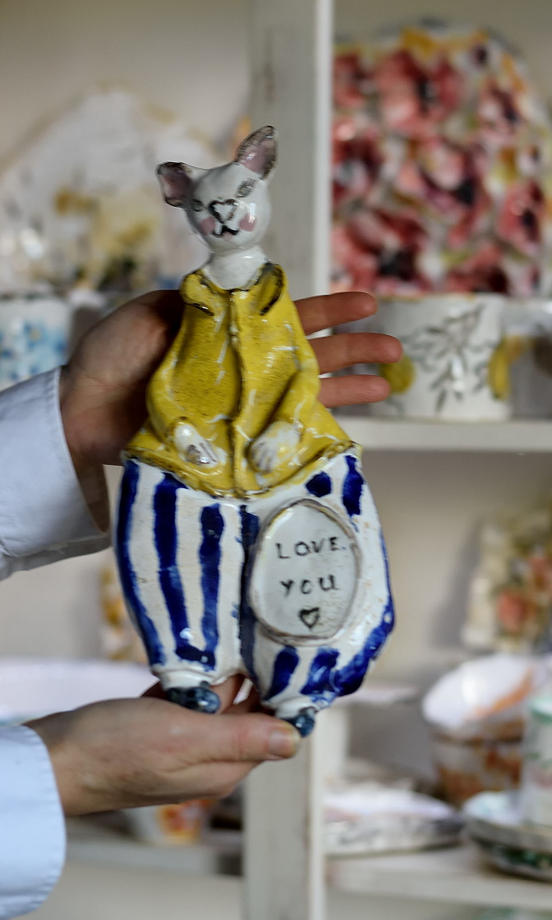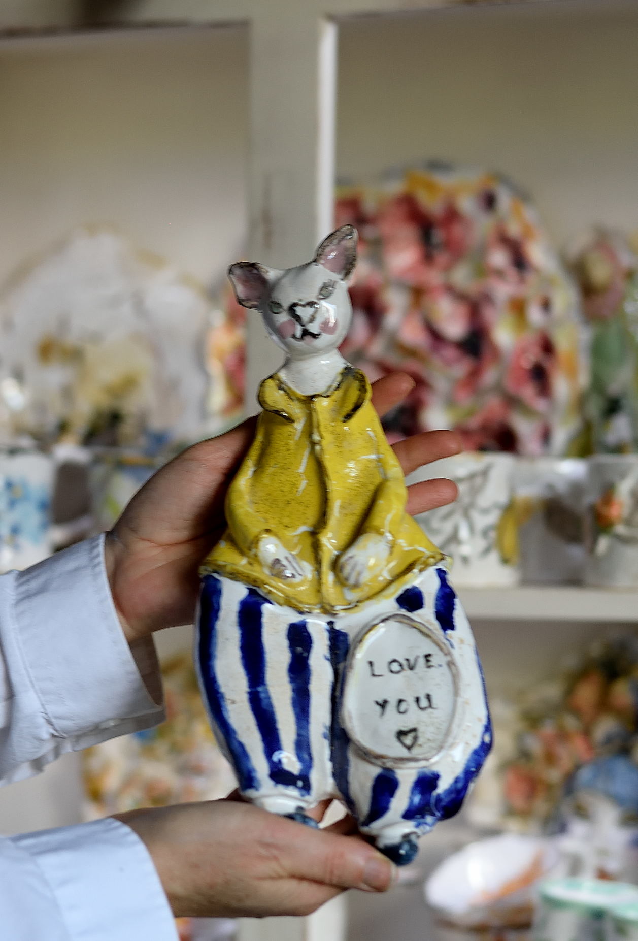 Ta płaska figura kota w spodniach z napisem „Love You” to wyjątkowa dekoracja, która doda wnętrzu charakteru i ciepła. Kot o sympatycznym wyglądzie i modnych spodniach przyciąga wzrok oraz wywołuje uśmiech.